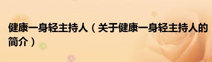 大家好,健康一身輕主持人,關于健康一身輕主持人的簡介很多人還不知道,現在讓我們一起來看看吧!