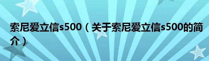 大家好,索尼愛(ài)立信s500,關(guān)于索尼愛(ài)立信s500的簡(jiǎn)介很多人還不知道,現(xiàn)在讓我們一起來(lái)看看吧!