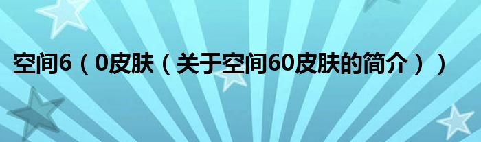 本文關于空間6 0皮膚的簡介就講解完畢,希望對大家有所幫助。