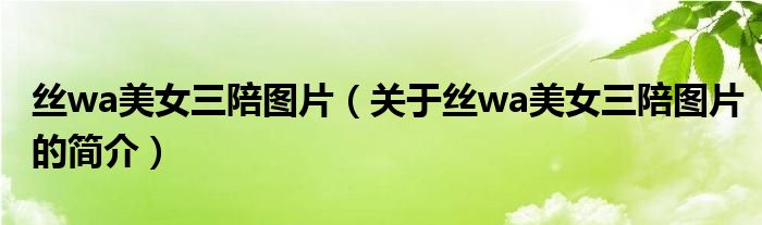 本文關于絲wa美女三陪圖片的簡介就講解完畢,希望對大家有所幫助。