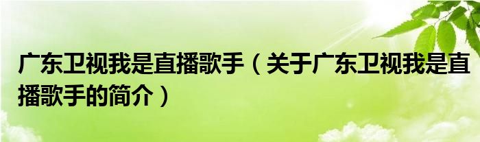 大家好,廣東衛(wèi)視我是直播歌手,關(guān)于廣東衛(wèi)視我是直播歌手的簡(jiǎn)介很多人還不知道,現(xiàn)在讓我們一起來看看吧!