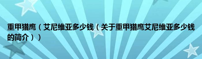 本文關(guān)于重甲獵鷹 艾尼維亞多少錢(qián)的簡(jiǎn)介就講解完畢,希望對(duì)大家有所幫助。