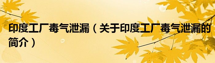 本文關于印度工廠毒氣泄漏的簡介就講解完畢,希望對大家有所幫助。