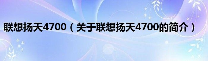 大家好,聯想揚天4700,關于聯想揚天4700的簡介很多人還不知道,現在讓我們一起來看看吧!