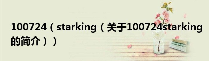 大家好,100724 starking,關(guān)于100724 starking的簡介很多人還不知道,現(xiàn)在讓我們一起來看看吧!