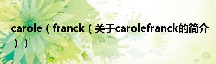 大家好,carole franck,關于carole franck的簡介很多人還不知道,現在讓我們一起來看看吧!