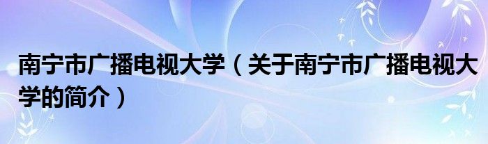 本文關于南寧市廣播電視大學的簡介就講解完畢,希望對大家有所幫助。