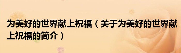 大家好,為美好的世界獻上祝福,關(guān)于為美好的世界獻上祝福的簡介很多人還不知道,現(xiàn)在讓我們一起來看看吧!