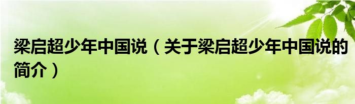 本文關(guān)于梁?jiǎn)⒊倌曛袊?guó)說(shuō)的簡(jiǎn)介就講解完畢,希望對(duì)大家有所幫助。