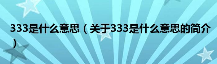 本文關于333是什么意思的簡介就講解完畢,希望對大家有所幫助。