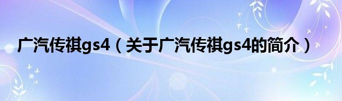 大家好,廣汽傳祺gs4,關于廣汽傳祺gs4的簡介很多人還不知道,現在讓我們一起來看看吧!