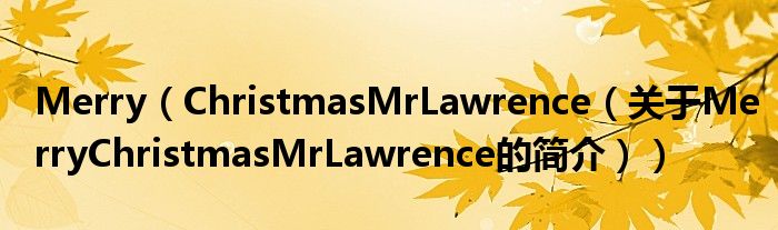 本文關(guān)于Merry Christmas Mr Lawrence的簡(jiǎn)介就講解完畢,希望對(duì)大家有所幫助。