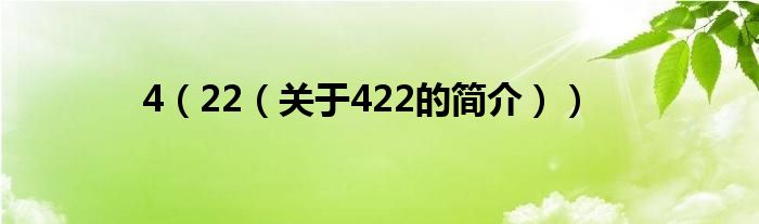 大家好,4 22,關于4 22的簡介很多人還不知道,現在讓我們一起來看看吧!