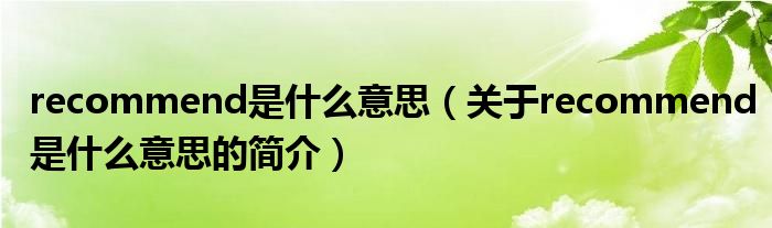 本文關于recommend是什么意思的簡介就講解完畢,希望對大家有所幫助。