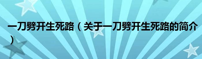 本文關于一刀劈開生死路的簡介就講解完畢,希望對大家有所幫助。