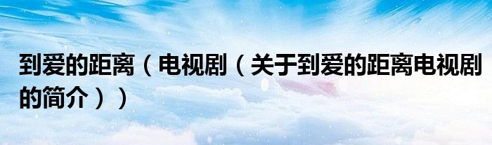 本文關于到愛的距離 電視劇的簡介就講解完畢,希望對大家有所幫助。