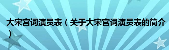 本文關于大宋宮詞演員表的簡介就講解完畢,希望對大家有所幫助。