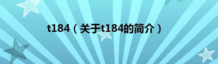 大家好,t184,關于t184的簡介很多人還不知道,現在讓我們一起來看看吧!