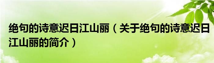 本文關(guān)于絕句的詩(shī)意遲日江山麗的簡(jiǎn)介就講解完畢,希望對(duì)大家有所幫助。