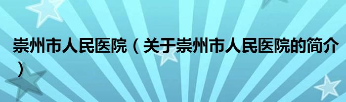 本文關于崇州市人民醫院的簡介就講解完畢,希望對大家有所幫助。