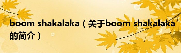 大家好,boom shakalaka,關于boom shakalaka的簡介很多人還不知道,現在讓我們一起來看看吧!