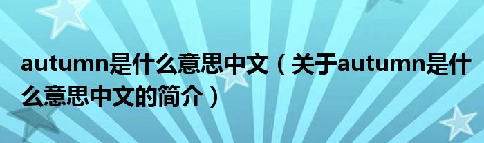 本文關于autumn是什么意思中文的簡介就講解完畢,希望對大家有所幫助。