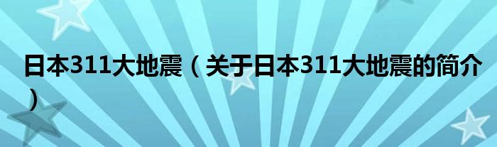 本文關(guān)于日本311大地震的簡介就講解完畢,希望對大家有所幫助。
