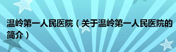 大家好,溫嶺第一人民醫院,關于溫嶺第一人民醫院的簡介很多人還不知道,現在讓我們一起來看看吧!