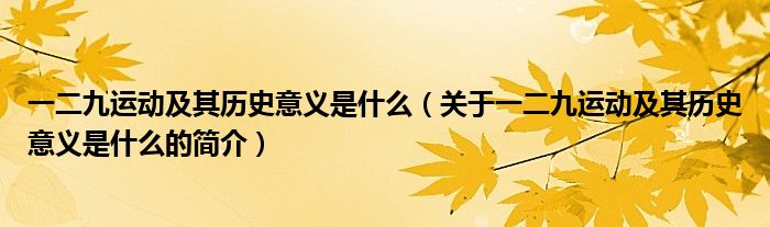本文關于一二九運動及其歷史意義是什么的簡介就講解完畢,希望對大家有所幫助。