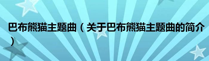 本文關于巴布熊貓主題曲的簡介就講解完畢,希望對大家有所幫助。