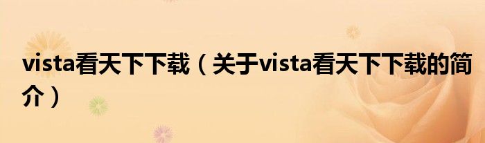 大家好,vista看天下下載,關于vista看天下下載的簡介很多人還不知道,現在讓我們一起來看看吧!