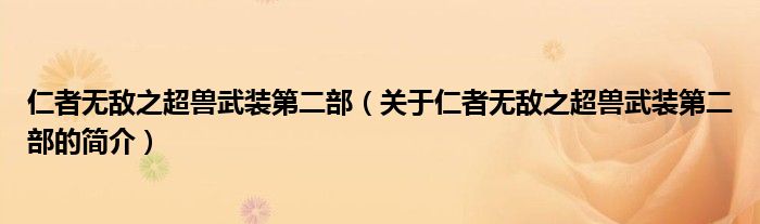 本文關于仁者無敵之超獸武裝第二部的簡介就講解完畢,希望對大家有所幫助。
