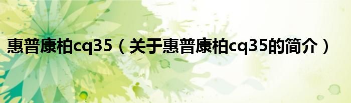 本文關于惠普康柏cq35的簡介就講解完畢,希望對大家有所幫助。