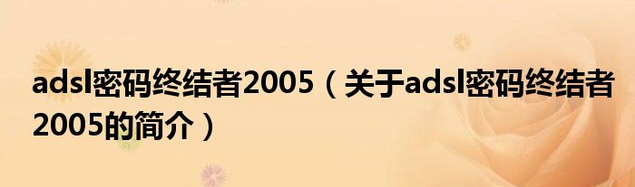 本文關于adsl密碼終結者2005的簡介就講解完畢,希望對大家有所幫助。