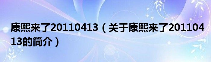 大家好,康熙來(lái)了20110413,關(guān)于康熙來(lái)了20110413的簡(jiǎn)介很多人還不知道,現(xiàn)在讓我們一起來(lái)看看吧!