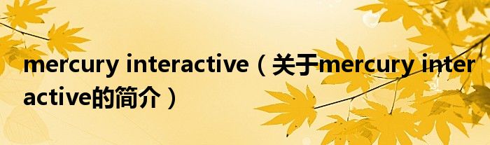 本文關于mercury interactive的簡介就講解完畢,希望對大家有所幫助。