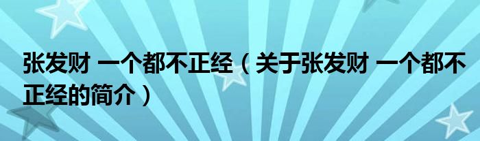 大家好,張發財 一個都不正經,關于張發財 一個都不正經的簡介很多人還不知道,現在讓我們一起來看看吧!