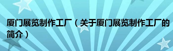 本文關于廈門展覽制作工廠的簡介就講解完畢,希望對大家有所幫助。