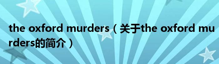 本文關于the oxford murders的簡介就講解完畢,希望對大家有所幫助。