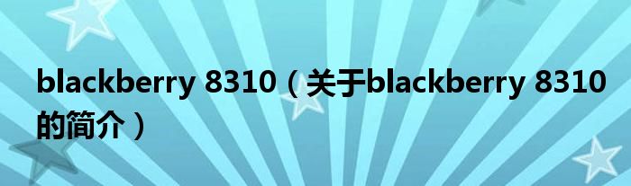 本文關于blackberry 8310的簡介就講解完畢,希望對大家有所幫助。