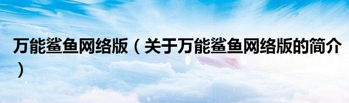 本文關于萬能鯊魚網絡版的簡介就講解完畢,希望對大家有所幫助。