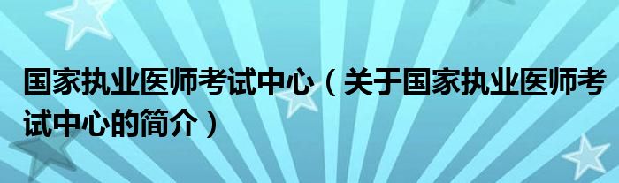 本文關于國家執業醫師考試中心的簡介就講解完畢,希望對大家有所幫助。