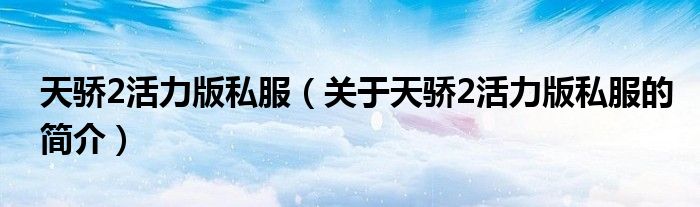 本文關(guān)于天驕2活力版私服的簡(jiǎn)介就講解完畢,希望對(duì)大家有所幫助。