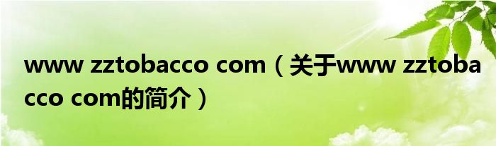 本文關于www zztobacco com的簡介就講解完畢,希望對大家有所幫助。