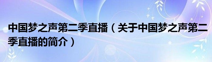 本文關于中國夢之聲第二季直播的簡介就講解完畢,希望對大家有所幫助。