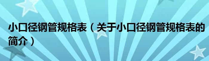 本文關于小口徑鋼管規格表的簡介就講解完畢,希望對大家有所幫助。