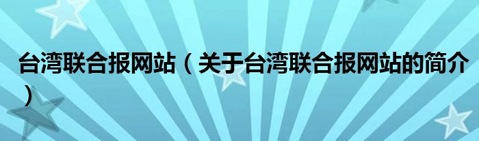 大家好,臺灣聯合報網站,關于臺灣聯合報網站的簡介很多人還不知道,現在讓我們一起來看看吧!