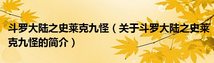本文關(guān)于斗羅大陸之史萊克九怪的簡介就講解完畢,希望對大家有所幫助。