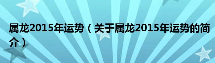 本文關于屬龍2015年運勢的簡介就講解完畢,希望對大家有所幫助。
