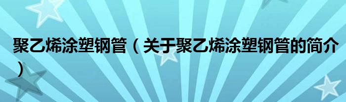 本文關于聚乙烯涂塑鋼管的簡介就講解完畢,希望對大家有所幫助。